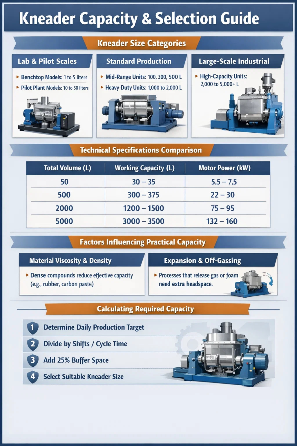 Công suất hiệu dụng của một máy nhào cao su hoặc máy trộn hóa chất không chỉ là vấn đề kích thước bể. Một số yếu tố vật lý xác định số lượng vật liệu bạn thực sự có thể xử lý mỗi lô: